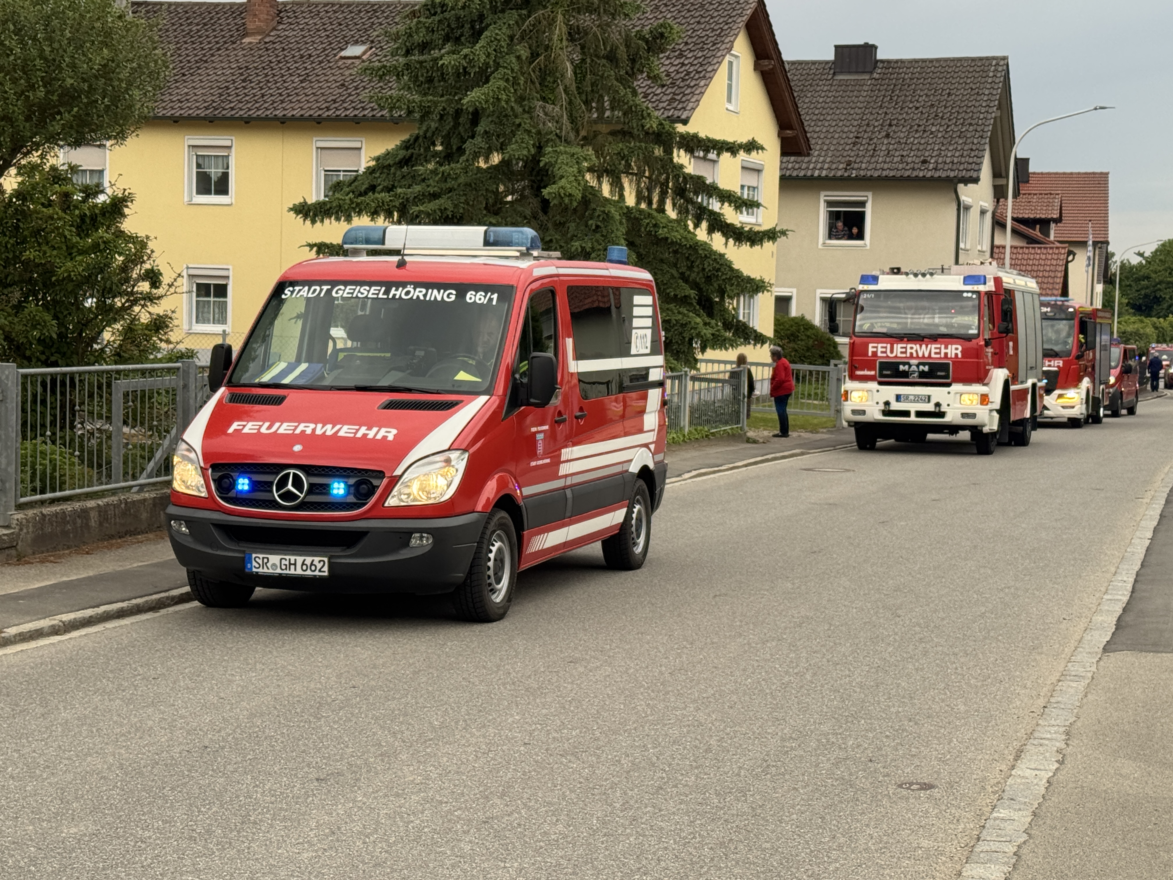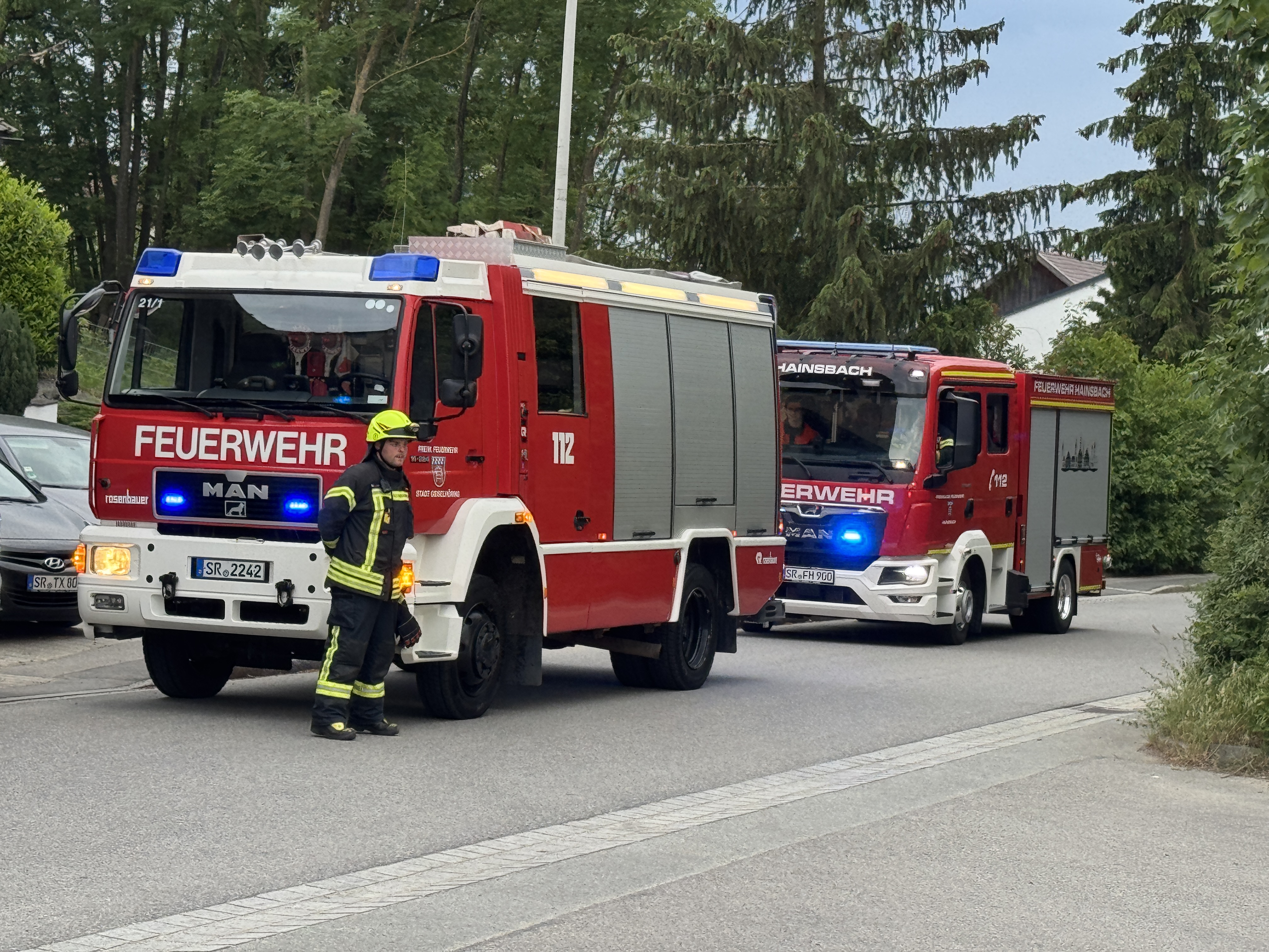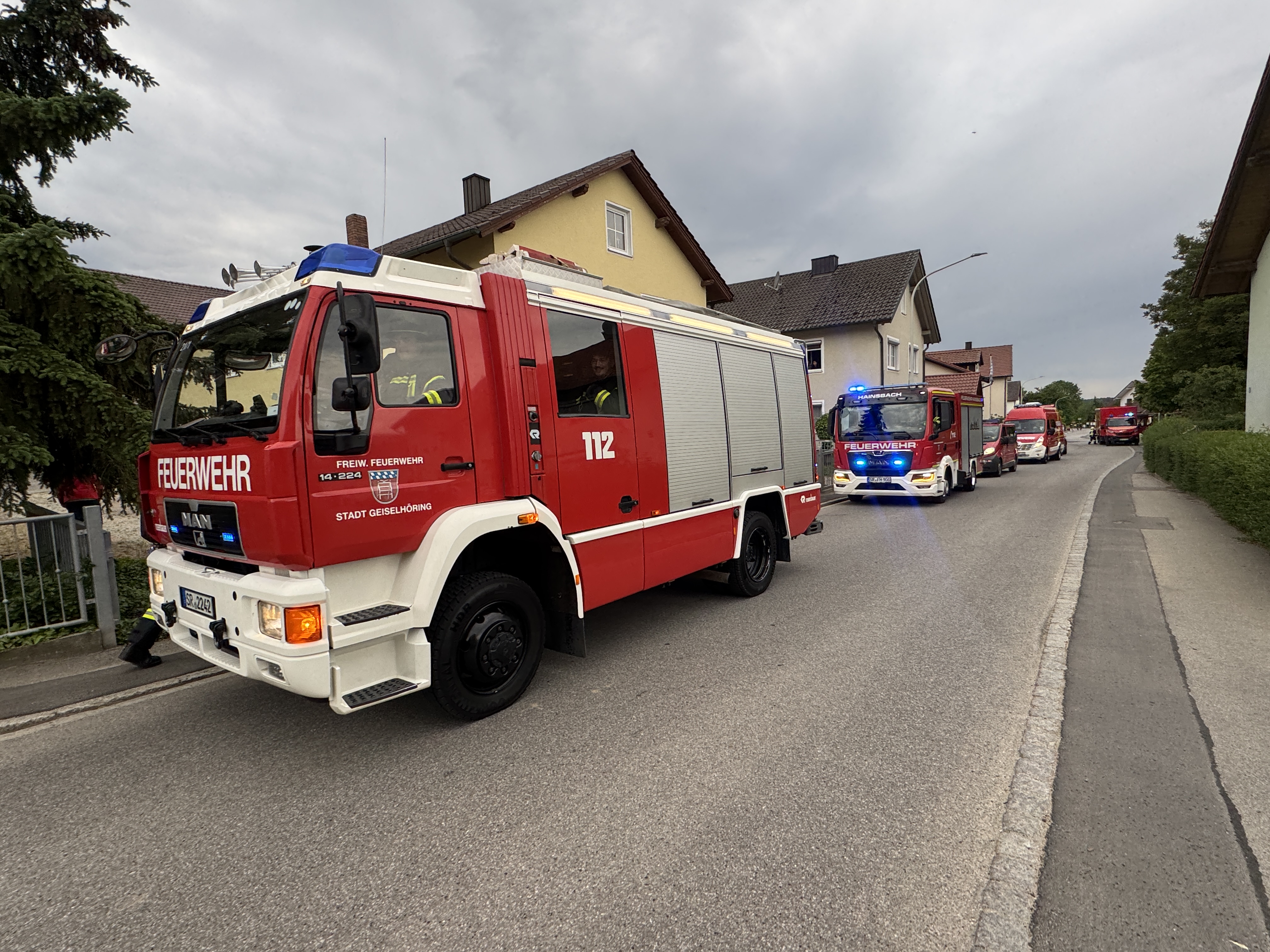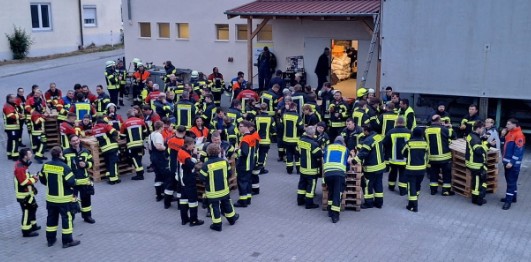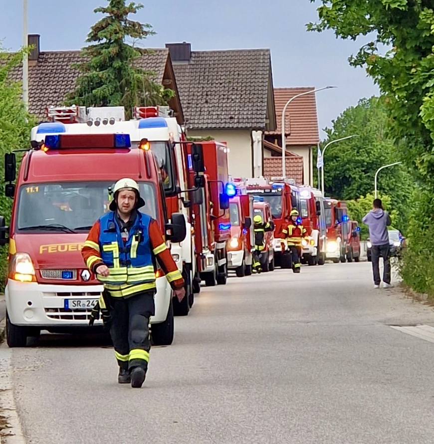Die Feuerwehr Hainsbach wurde am 21. Mai von der Feuerwehr Perkam zu einer groß angelegten Gemeinschaftsübung nach Perkam eingeladen. Mit zwei Fahrzeugen und insgesamt 14 Einsatzkräften fuhren wir nach dem Übungsabruf das Schadensobjekt am Lagerhaus in Perkam an. Insgesamt waren an der Übung acht Feuerwehren (aus Pönning/Oberharthausen, Geiselhöring, Wiesendorf-Bergstorf, Rain, Dürnhart, Hainsbach & Mallersdorf) mit über 110 Einsatzkräften teil. Bei der Zwischen- und Abschlussbesprechung der Führungskräfte wurde sich gegenseitig auf dem Laufenden gehalten und das weitere Vorgehen abgestimmt. Kreisbrandrat Markus Weber, KBI Herbert Dietl und KBM Josef Solleder sprachen zum Abschluss noch Punkte an, die es besonders zu beachten galt. Im Anschluss lud der Geschäftsführer Johannes Höring alle Beteiligten noch zu einer Brotzeit mit Getränken ein. Vielen Dank an die Feuerwehr Perkam für die Einladung und die Ausarbeitung dieser Übung.