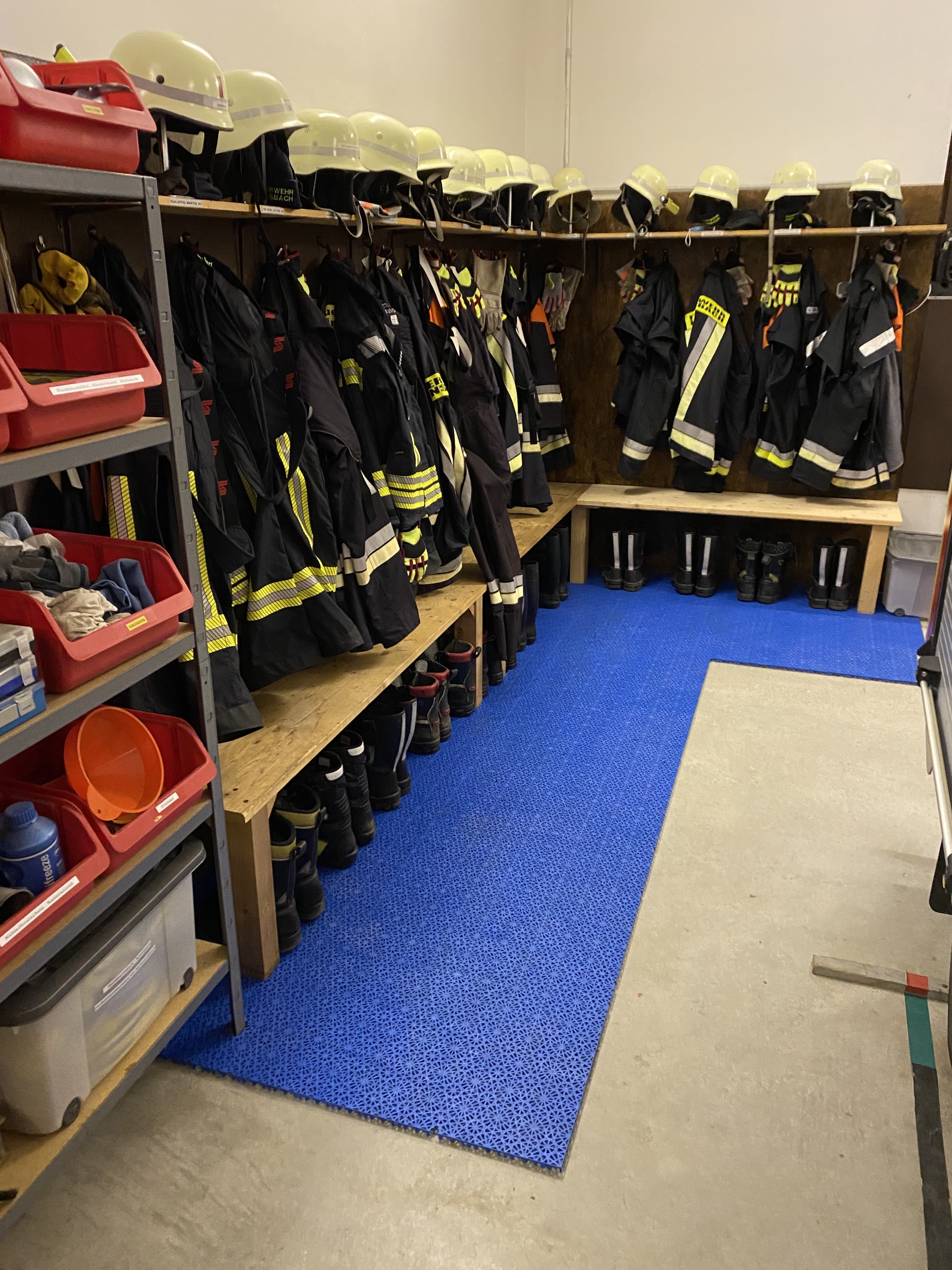 Feuerwehrhaus mit neuem Boden, Damenumziehbereich, Werkstatt und Anbau